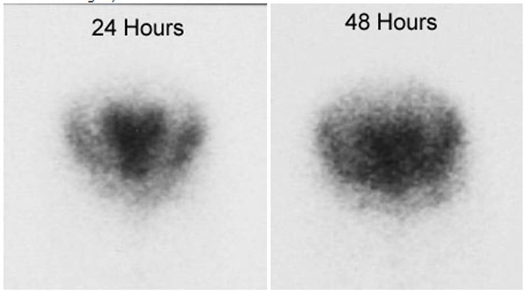 ·       Renal and bladder activity will be seen as a result of peritoneal absorption of the tracer.