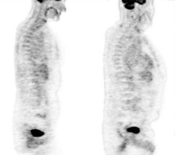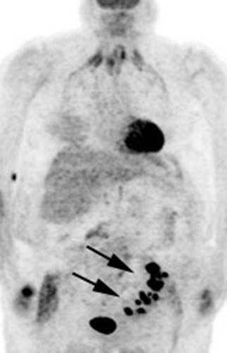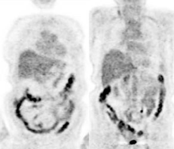 increased colonic FDG uptake was seen in this asymptomatic patient. Diffuse