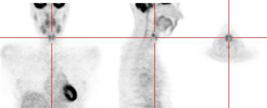 left hip prosthesis. The PET scan was performed for the evaluation of a lung